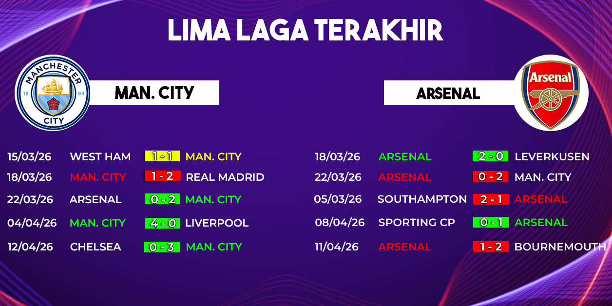 Selisih poin yang tipis di klasemen membuat laga ini terasa seperti “final dini”. Jika Arsenal gagal meraih poin di Etihad, jarak dengan City bisa terpangkas drastis menjadi hanya tiga poin—bahkan City masih memiliki satu pertandingan tersisa.