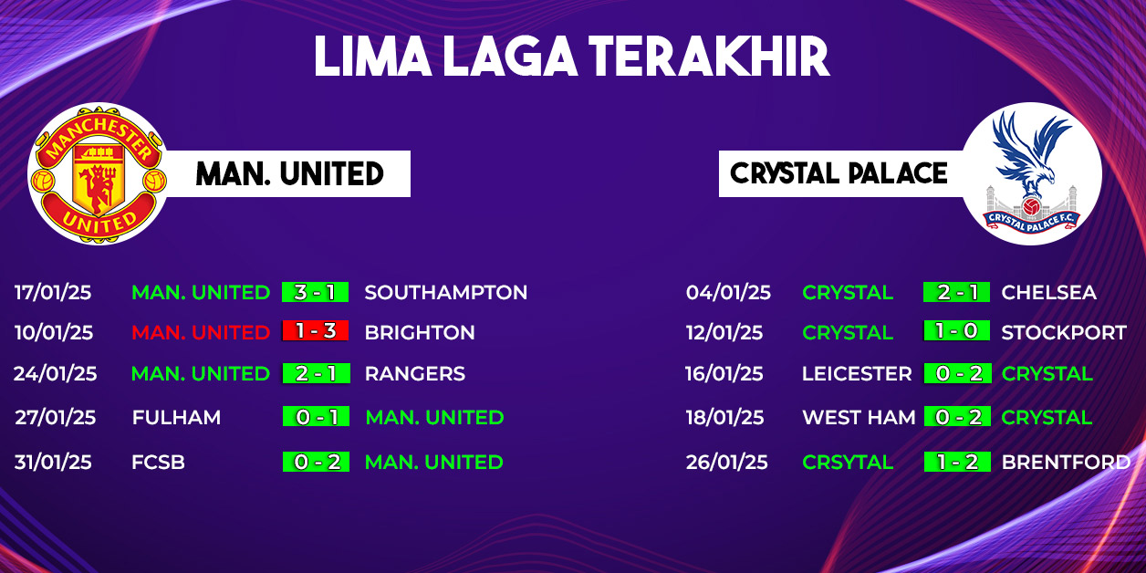 Namun, Crystal Palace juga dipastikan akan tampil dengan motivasi tinggi untuk kembali mencuri poin dari Old Trafford. Pertandingan ini diprediksi akan berlangsung sengit, mengingat kedua tim sama-sama memiliki ambisi besar untuk meraih hasil maksimal.
