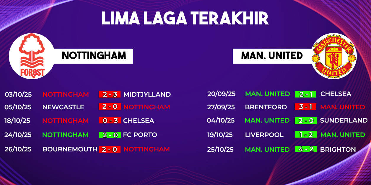 Pertarungan Nottingham Forest vs Manchester United di Premier League 2025/2026 diprediksi berlangsung seru dan sarat gengsi. Forest ingin membuktikan mereka belum habis, sementara MU bertekad menunjukkan konsistensi dalam perburuan empat besar.